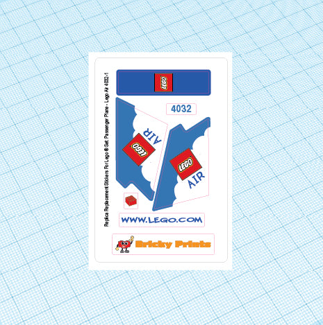 Replica Replacement sticker Set: Classic Town World City Passenger Plane - LEGO Air Version 4032-1