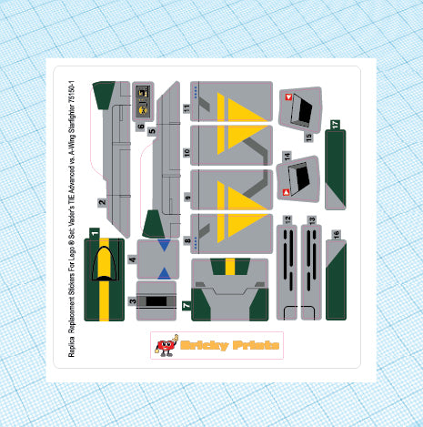 Replica Replacement sticker Set: Vader's TIE Advanced vs. A-Wing Starfighter 75150